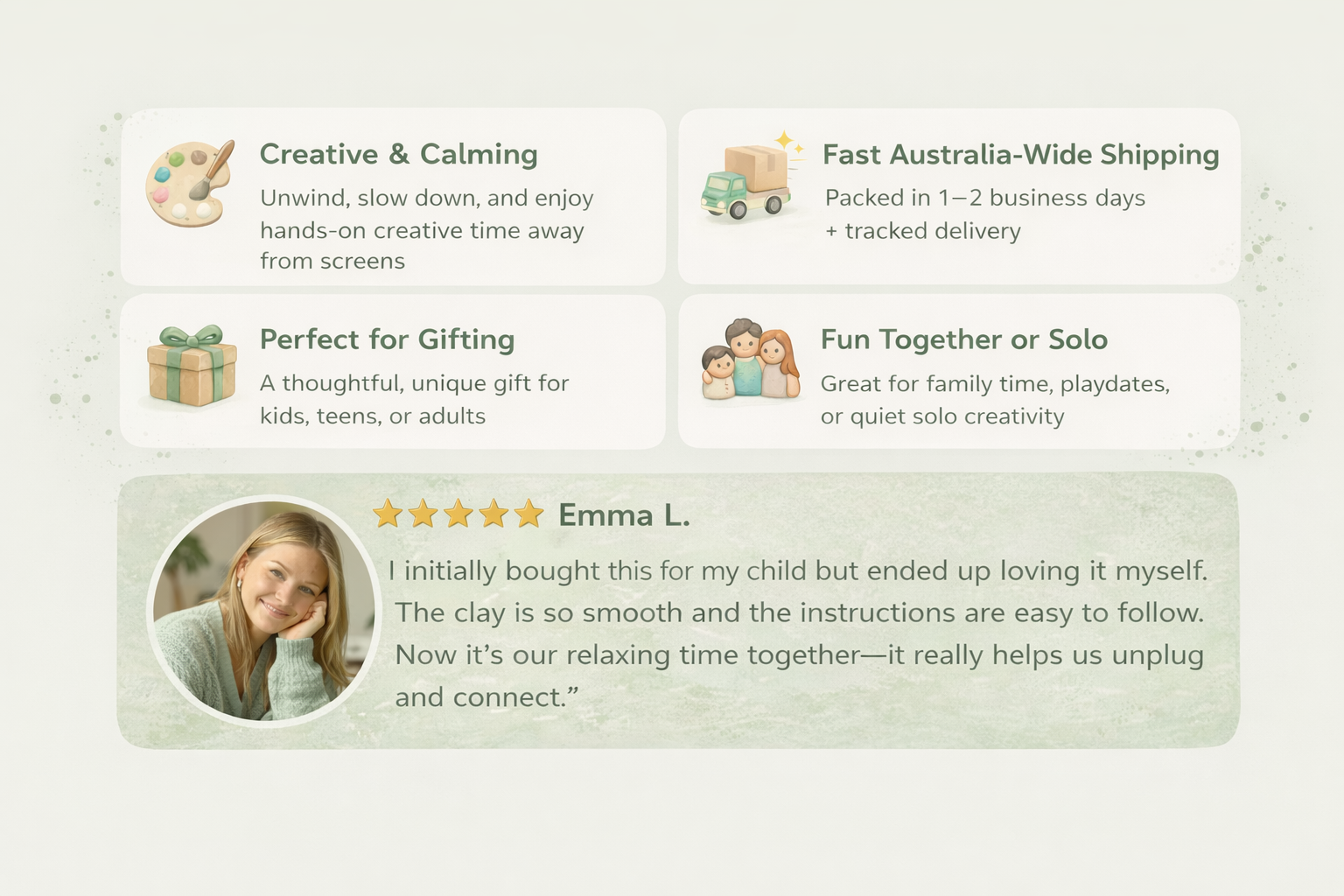 Air-dry clay is a soft, mouldable clay that hardens naturally when left out to dry—no oven or kiln required. It’s easy to work with and perfect for kids, beginners, and relaxed creative projects at home.